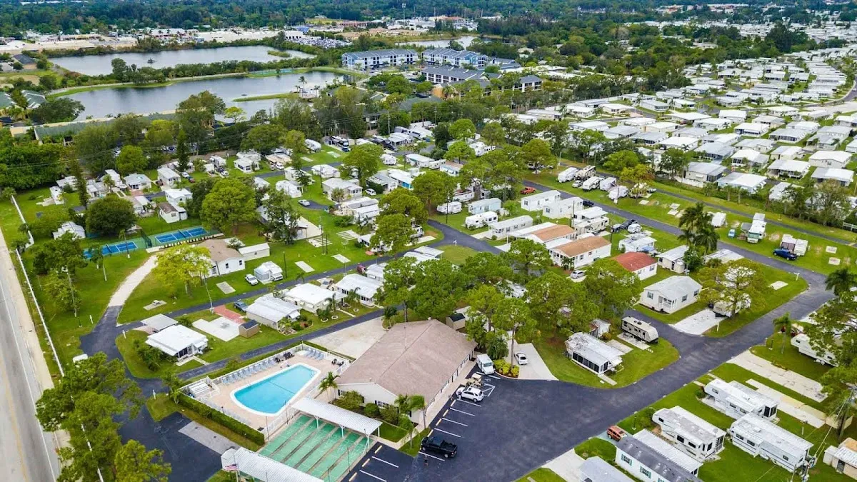 Arbor Terrace RV Resort is a Sun RV Resort at 405 57th Ave W in Bradenton, FL with 2 dedicated outdoor hard pickleball courts featuring permanent lines and nets. The pet-friendly resort offers RV sites and cottages for rent, along with a swimming pool, dog park, clubhouse, petanque, game room, and social events. Open to residents and guests.